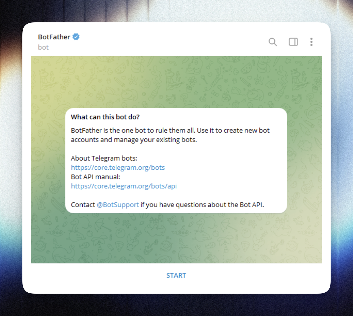 Search for @BotFather — this is the official Telegram bot used to create and manage other bots.