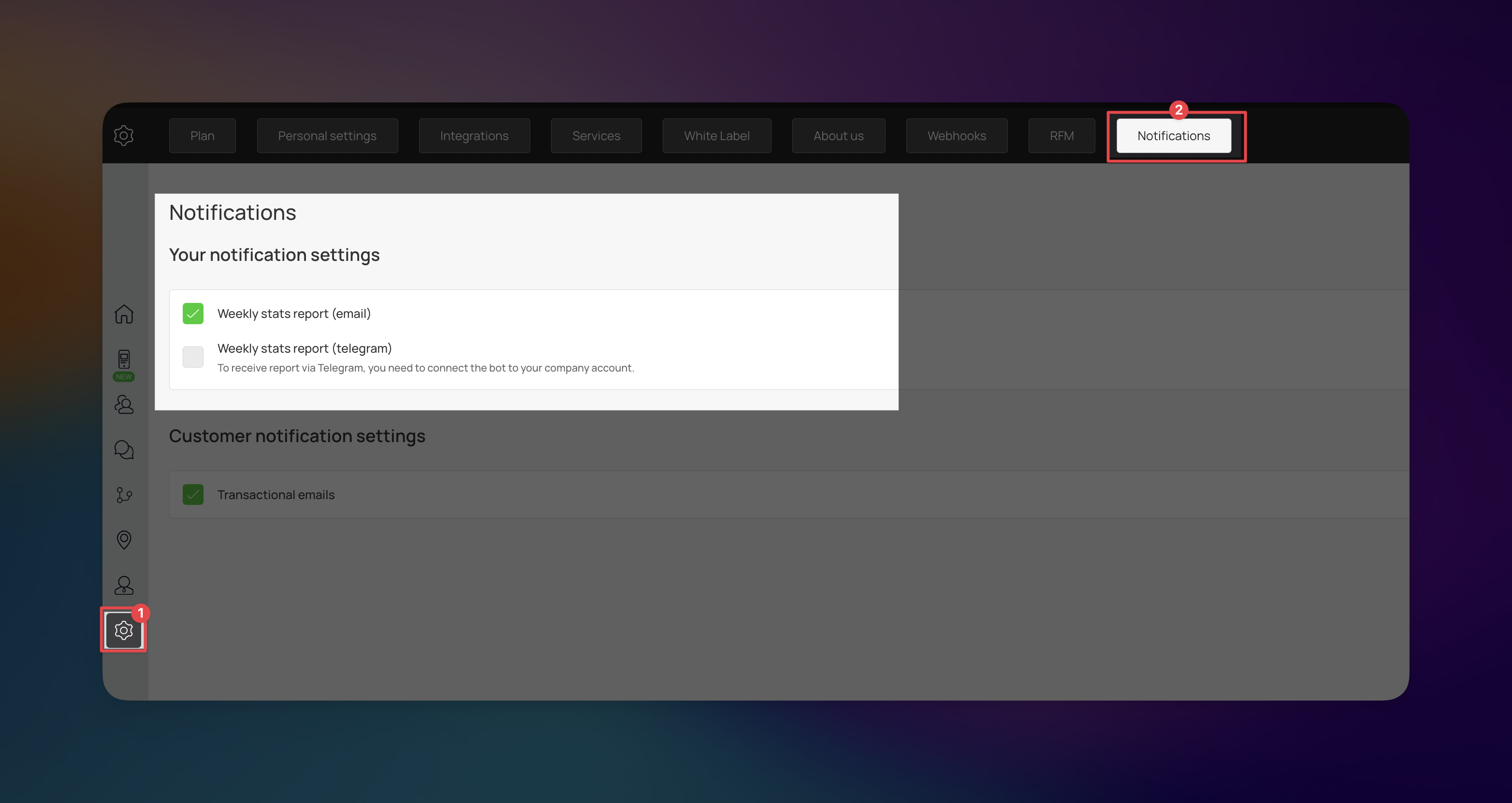 Loyally.ai automatically compiles your key performance indicators (KPIs) from the previous seven days into a concise summary. To ensure you stay informed your way, you can choose to receive these reports via two different channels: