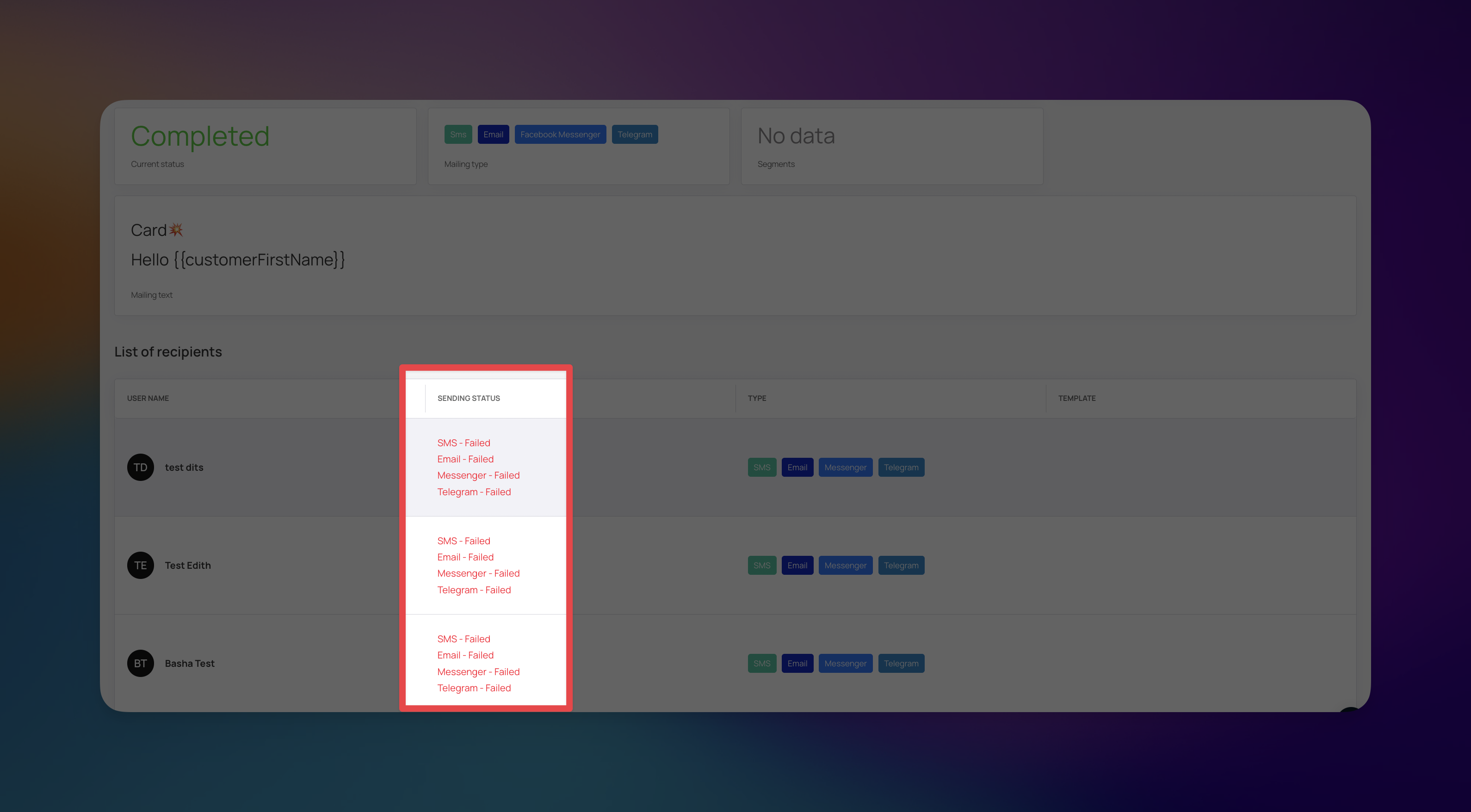 Failed Sending Status in Mailing Campaigns | Loyally.ai