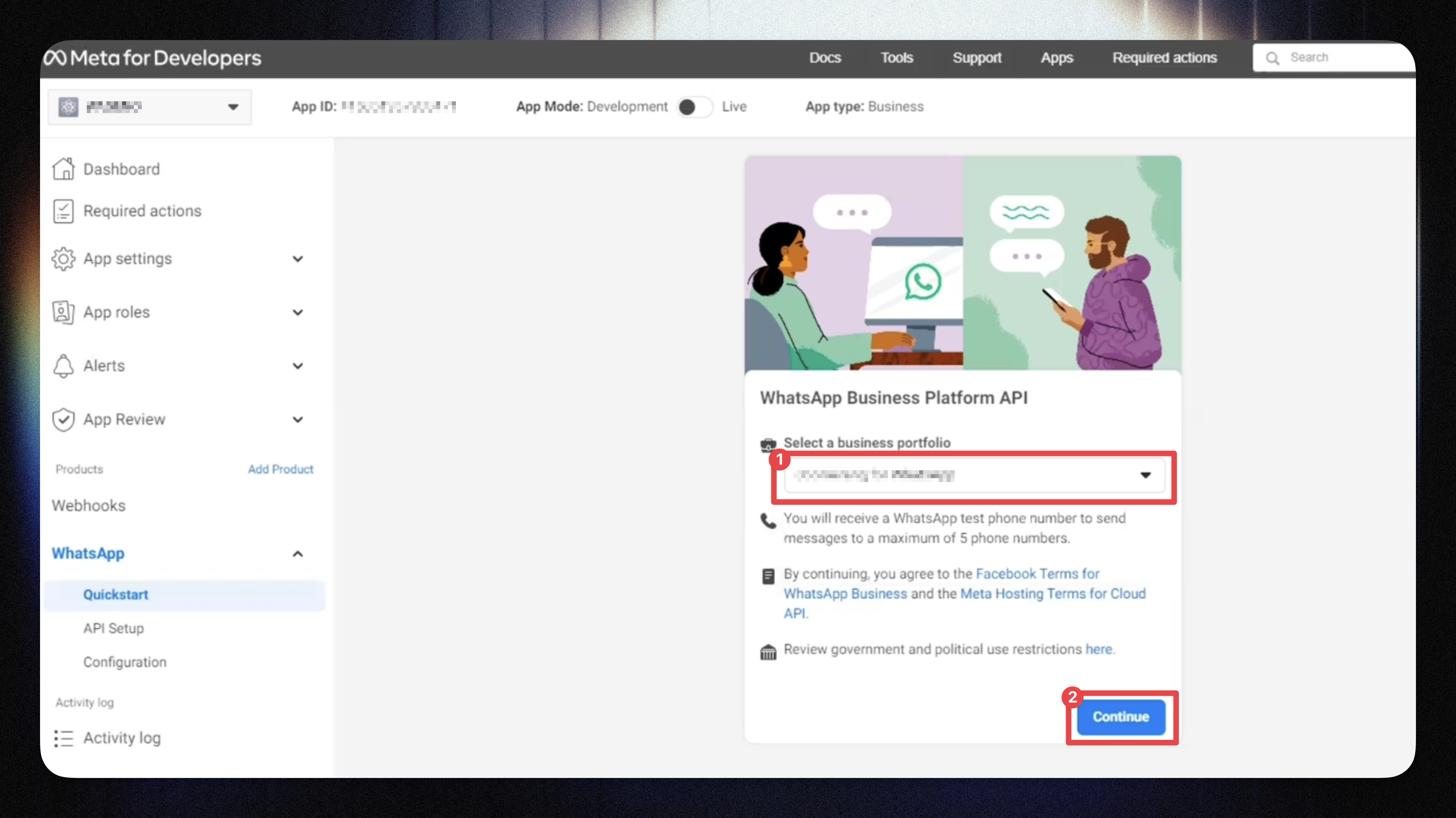 Enter your Application Name, email, and select or create a Business Manager.