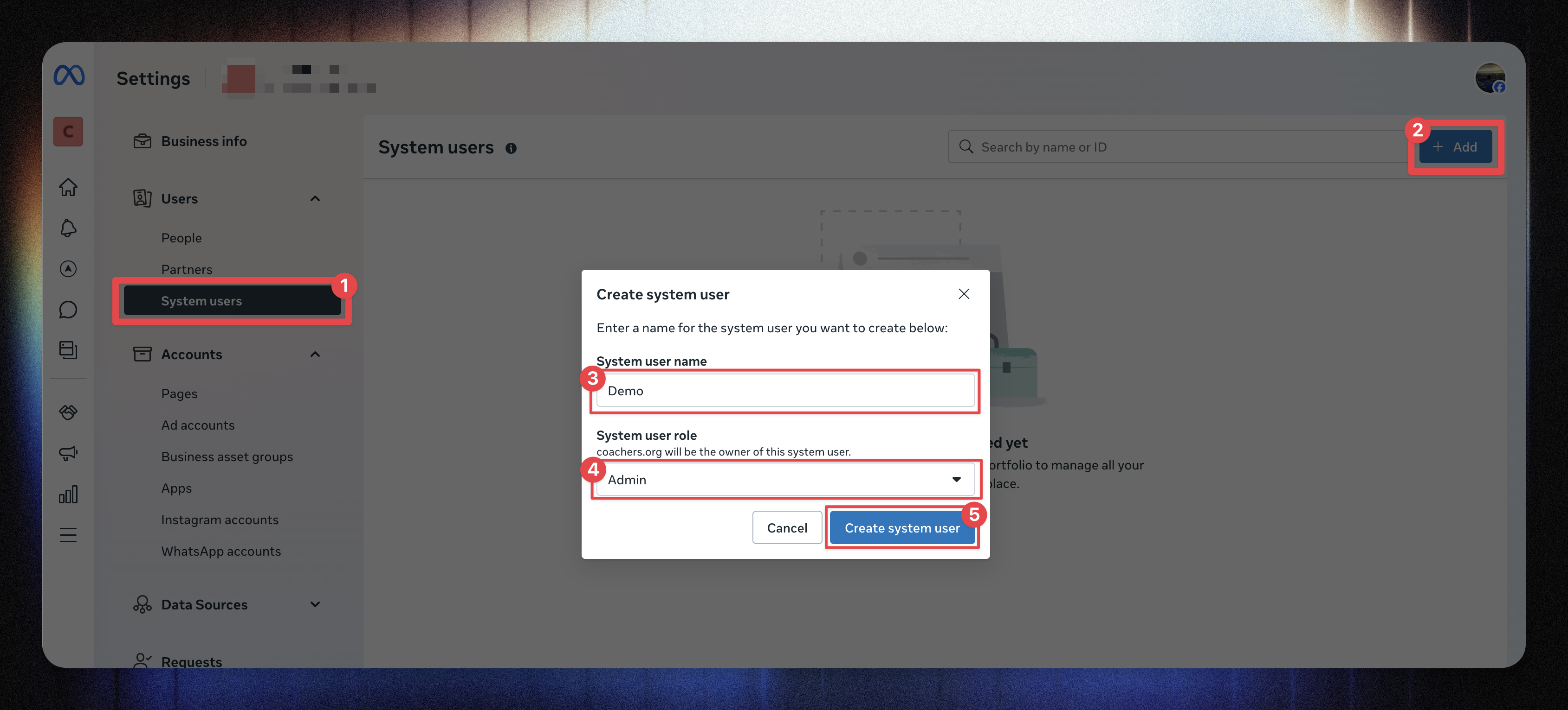 Select the Business Manager you used earlier.
