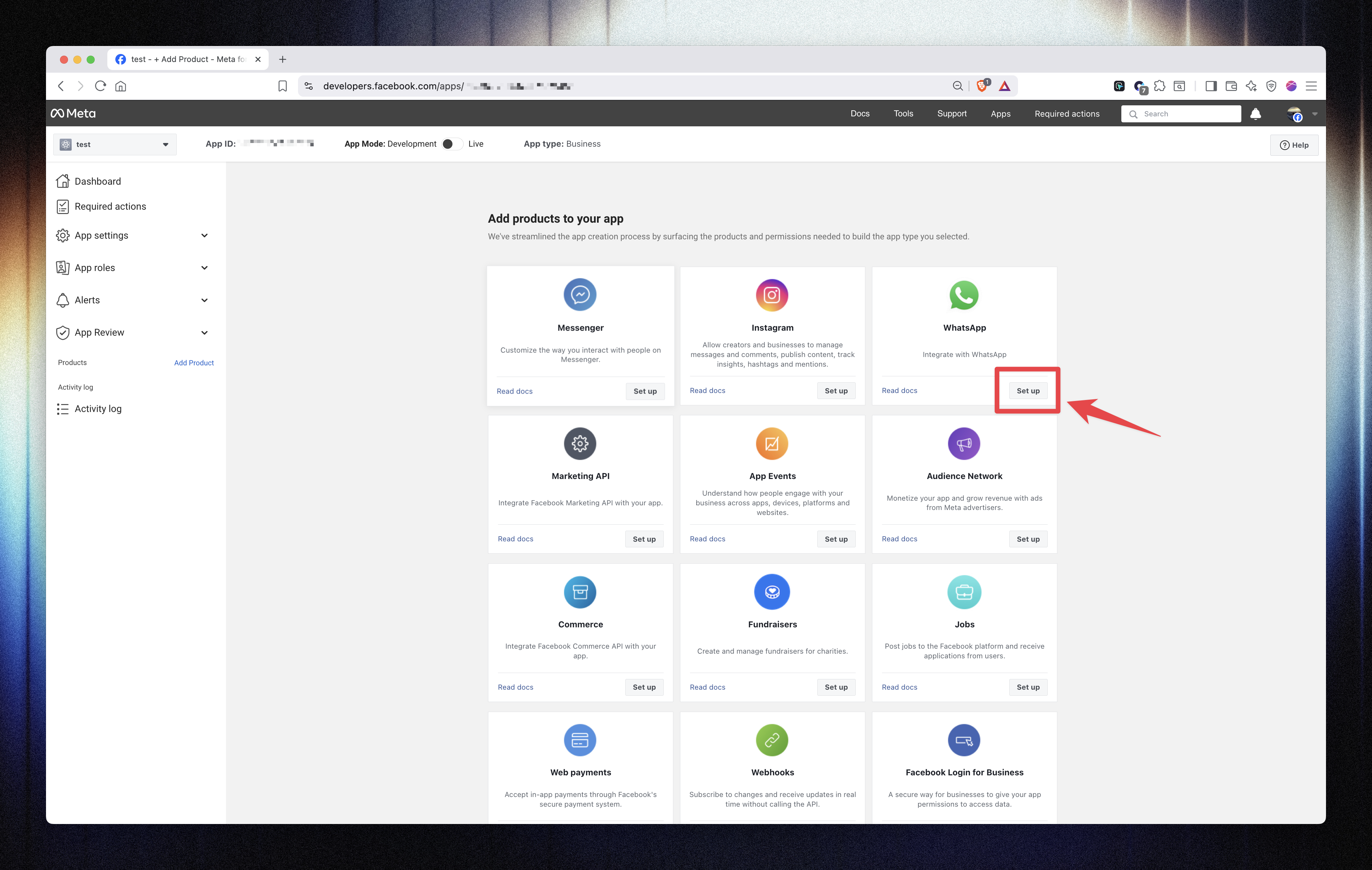 Go back to your App Dashboard in Meta.