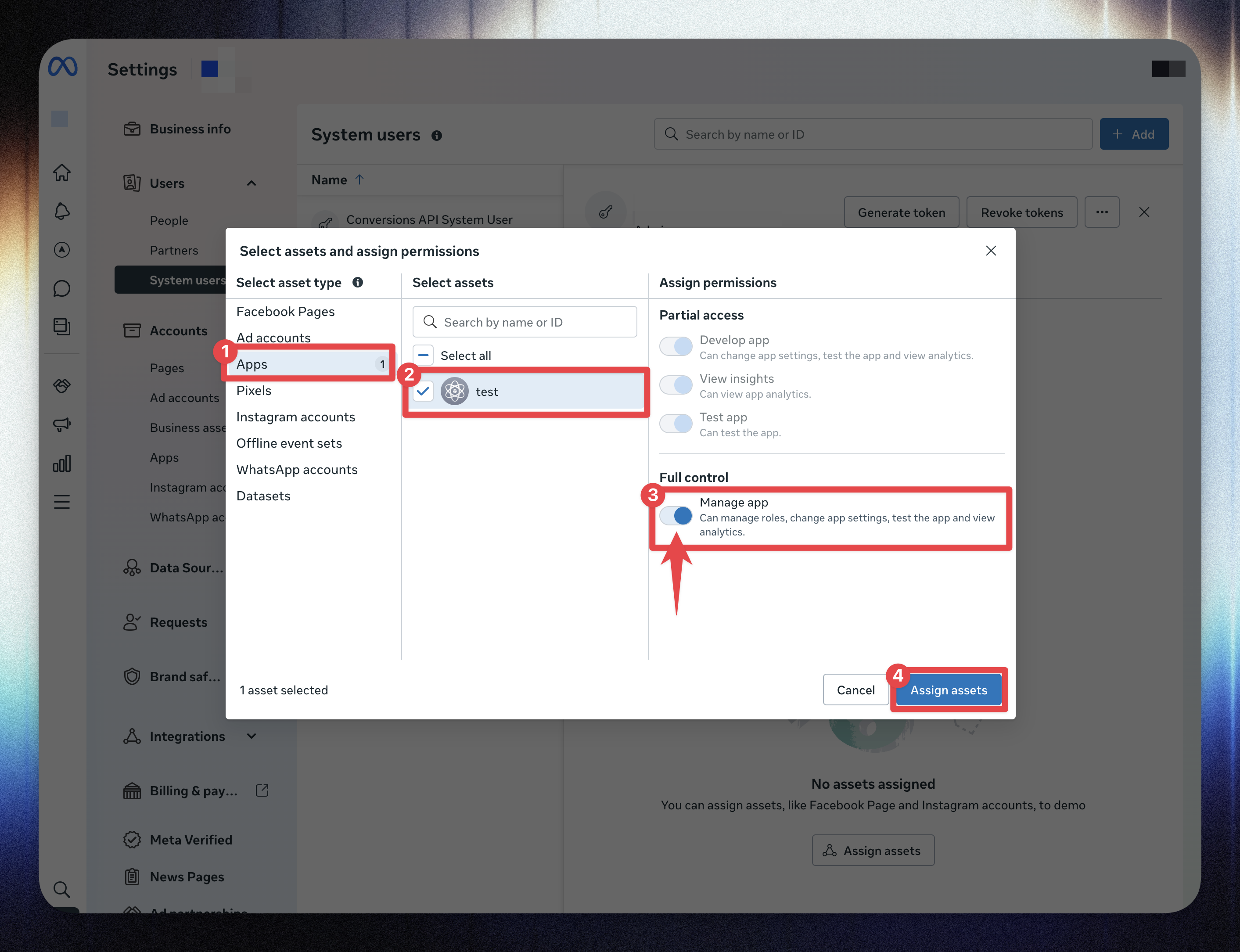 Open Assign Assets → Apps.