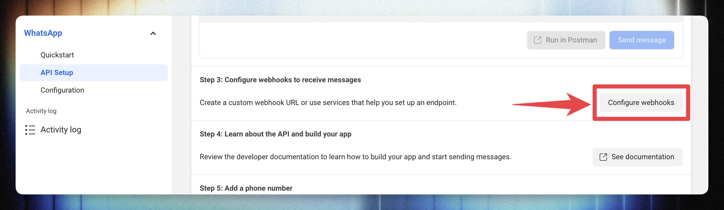 In your app’s sidebar, go to WhatsApp → Configuration.