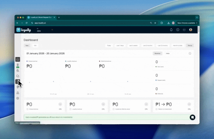 Go to the app.Loyally.ai enter your credentials to access your dashboard.