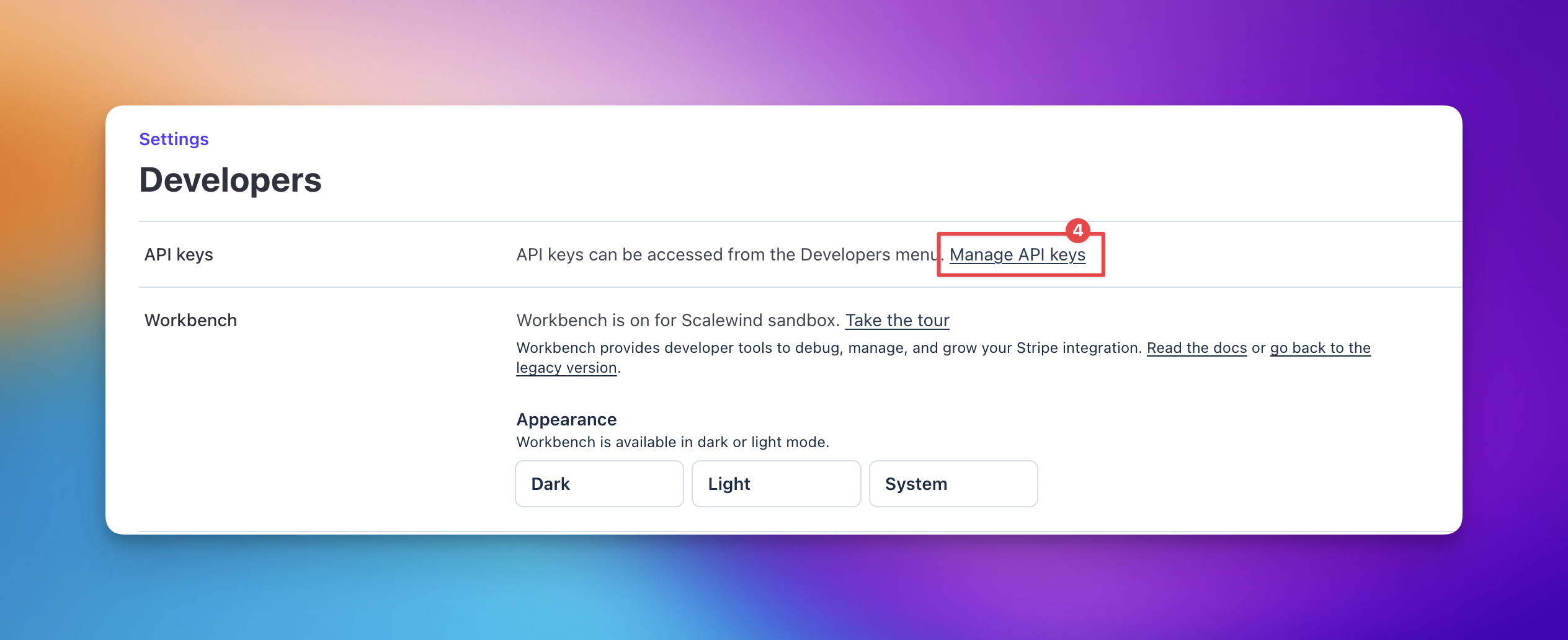 To connect the two platforms, you must first obtain your unique API keys from Stripe.