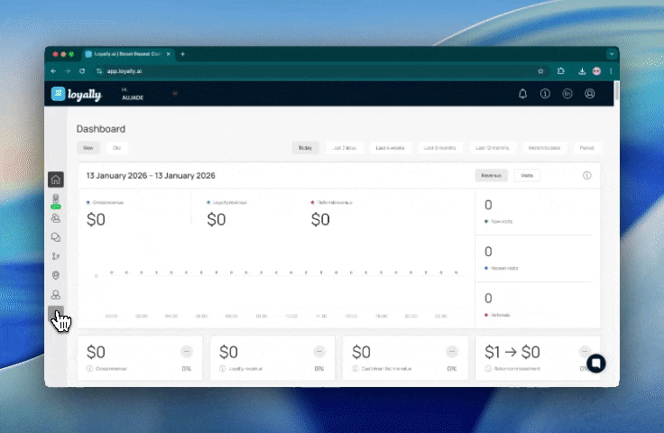 Sign in to Loyally.ai and go to 'Settings' in the Menu Panel.
